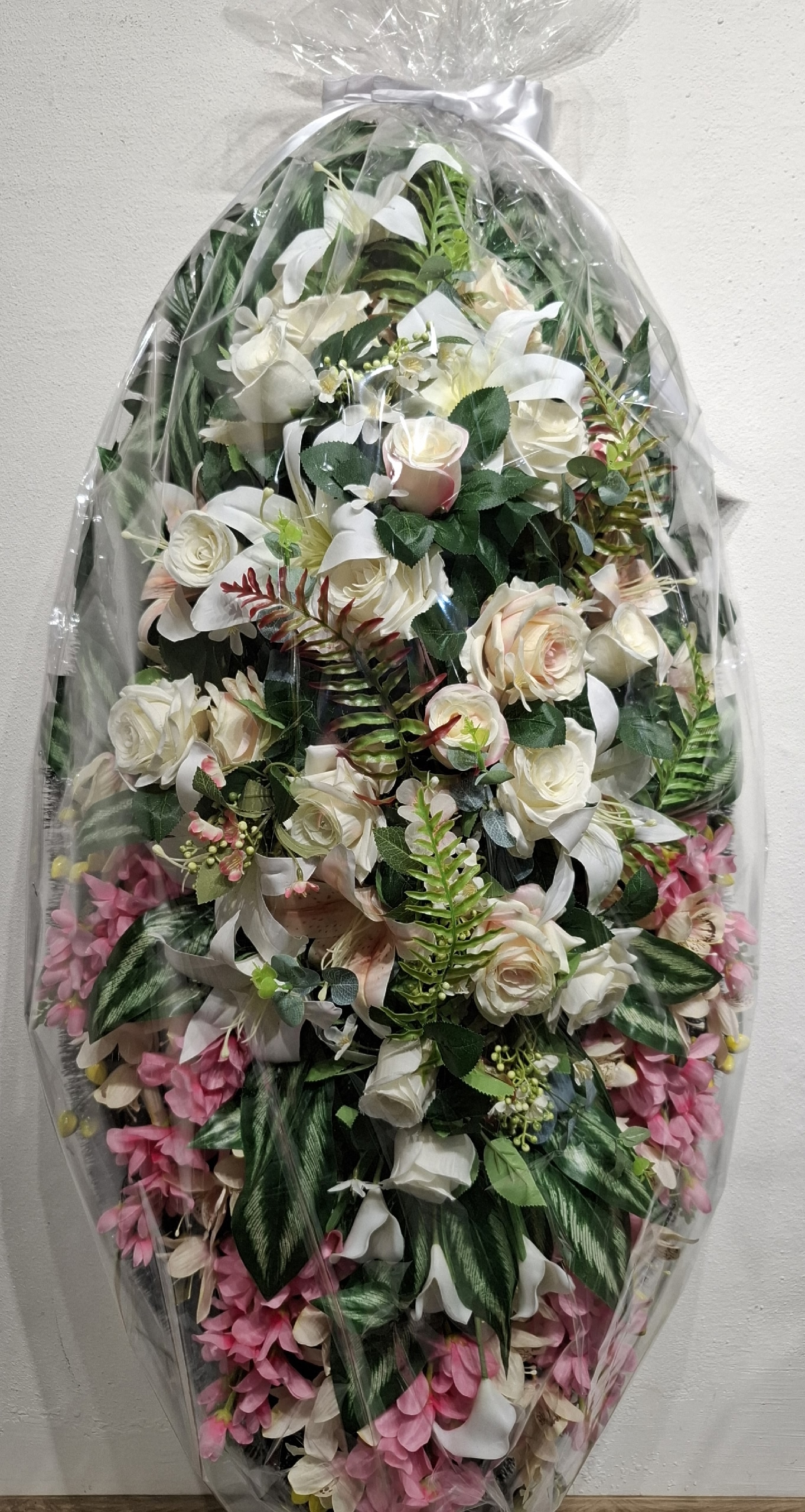 - Венки и корзины из живых и искусственных цветов — различные размеры и формы для индивидуального подхода к каждой церемонии.